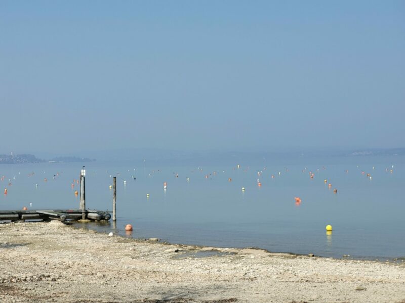 Entlang des Bodensees mit C. Entlang des glitzernden Wassers. Durch den verschwindenden Horizont eher der Blick auf ein Meer denn auf einen See. Optische Täuschung inclusive: in der Ferne ein Segelboot, welches oberhalb des Wassers schwebte.