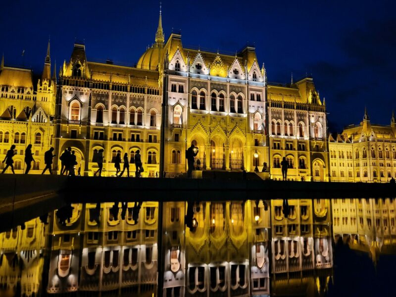 Das Parlament in Budapest, bei Nachtbeleuchtung fotografiert, mit sanft plätschernder Wasserfläche davor und vorbeigehenden Menschensilhouetten wie Scherenschnitten, fasziniert. Noch heute morgen waren wir in Bratislava, doch das scheint jetzt Monate zurückzuliegen. Budapest nimmt einen gefangen. Optisch beeindruckend. Eine wahrhafte Hauptstadt mit einer unglaublich lässigen Stimmung, viel Verkehr, engen Strassen, breiten Boulevards, weiten Plätzen und grossen Kirchen.