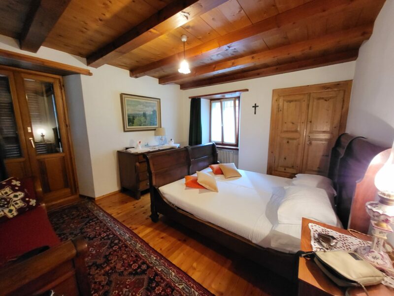 20.15 Uhr. Zurück im B&B da Käthy, im herrlich altmodischen Zimmer. Es gibt ein Schlittenbett, aber auch eine alte, lächelnde Puppe auf dem Sofa, welche heute Nacht hoffentlich brav schläft und mich nicht erschreckt. Das Bettzeug riecht nach Lavendel – oder Mottenpulver. Ich öffne die Flügeltüren zum Balkon; lieber ein wenig Lärm von der Strasse, als ver-lavendelisiert zu werden.