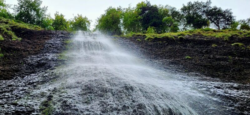 Die Wände links und rechts sind steil und hoch. Nun, kein wirklicher Grand Canyon, aber ein Vergleich lässt sich herleiten. Wir sind beeindruckt. Stehen ziemlich klein vor dem Ofenloch und werden leicht nass beim Fotografieren des jungen, herabstürzenden Necker.