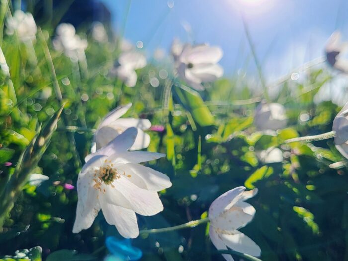 Frühling pur! Sprossende Bäume, blühende Blumen und ein intensiv grünes Gras, blauer Himmel, in der Ferne weisse Gipfel, Vogelgezwitscher ohne Unterlass, der Schrei von etlichen Rotmilanen. Einer der Milane kreist zuerst über dem Feld, dann über mir. So tief, so nahe, dass ich einzelne Federn erkenne, ihm in die Augen schauen kann und einen Schnabelhieb erwarte – der jedoch ausbleibt. Duft nach Bärlauch, nach wildem Kraut. Kühe und Schafe und Lämmer im frischen Gras, neugierig schauend.