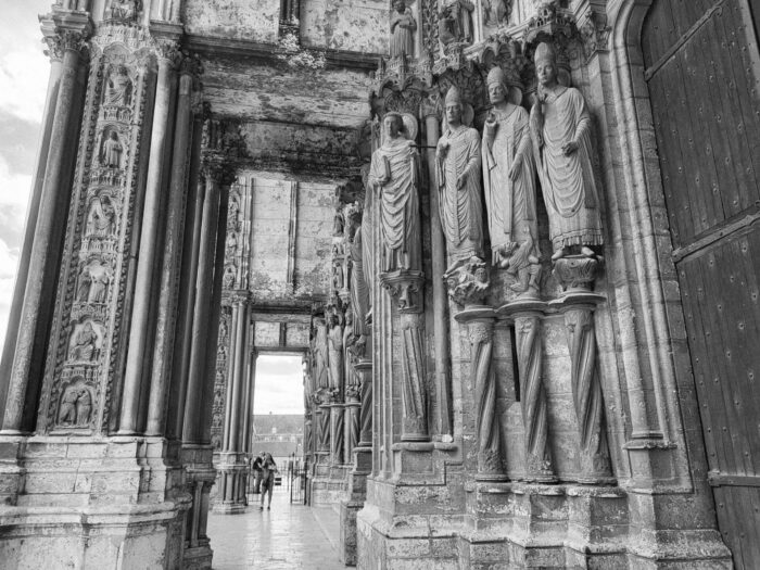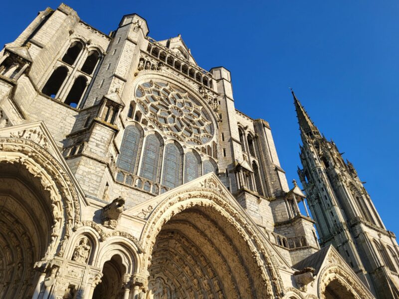 Da, in Chartres. Berühmt für die Kathedrale, Unesco-Welterbe, laut Wikipedia ein einflussreiches Beispiel der Gotik. Die Kathedrale ist beeindruckend! Stunden oder Tage bräuchte man, um sich all die Details anzuschauen. Ich begnüge mich mit einem ersten Durchgang; später, im schönsten Abendlicht, erneute Betrachtung von aussen.