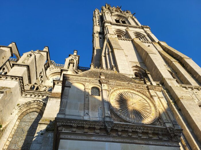 Da, in Chartres. Berühmt für die Kathedrale, Unesco-Welterbe, laut Wikipedia ein einflussreiches Beispiel der Gotik. Die Kathedrale ist beeindruckend! Stunden oder Tage bräuchte man, um sich all die Details anzuschauen. Ich begnüge mich mit einem ersten Durchgang; später, im schönsten Abendlicht, erneute Betrachtung von aussen.