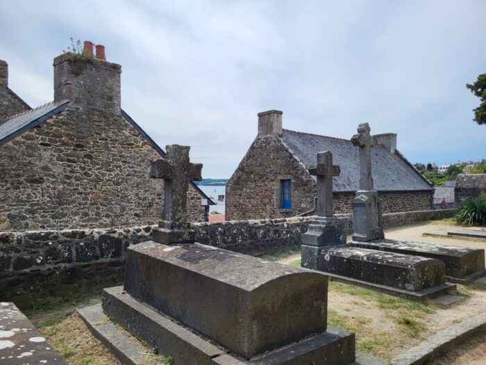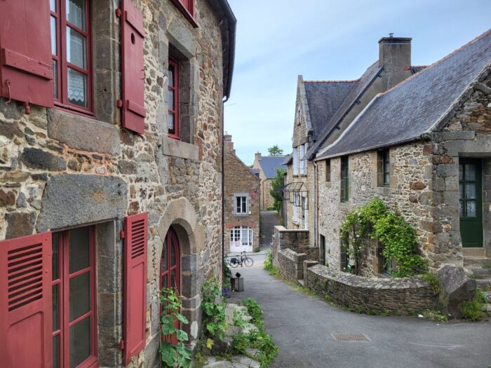 Auf der Fahrt nach Pleudihen wollen wir Cancale besuchen, soll sehr hübsch am Meer liegen. Aus der Ferne erkennt man tatsächlich die tolle Lage, das Wasser leuchtet blau. Parkplätze gibt es allerdings nicht mehr, ein Getümmel von Menschen wie auf einem Rummelplatz. Wir haben nicht bedacht, dass Samstag ist und die Franzosen sehr gerne ausgehen. Gereizt fahren wir weiter, suchen nach einer Alternative und entscheiden uns für Saint-Suliac am Fluss Rance. Wunderhübsches Städtchen mit Häusern aus Stein und vielen Blumen, bekommt auch Besuch, wird allerdings nicht überschwemmt, wir essen eine Kleinigkeit und schlendern rum. Weiterfahrt zu Agatha und Alfred. Morgen ist Sonntag. Sollte man einmal nichts tun? Um all die Eindrücke zu verarbeiten. Zur Ruhe kommen.