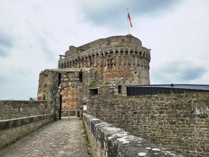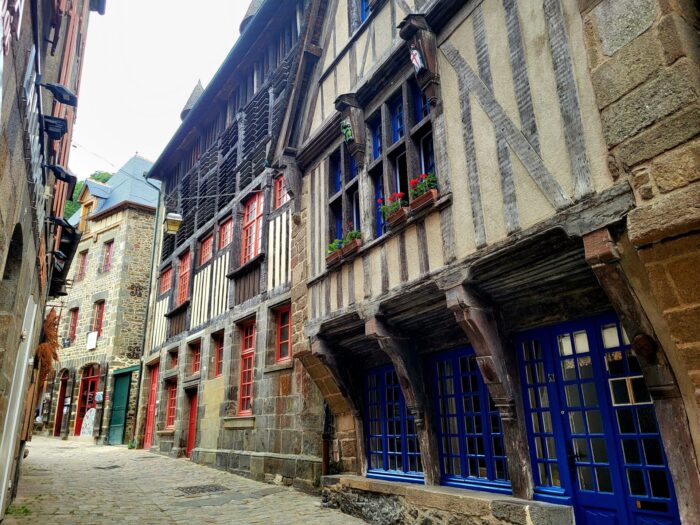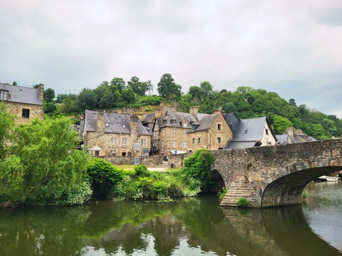 Fahrt nach Dinan. Die Altstadt liegt etwa 80 m über dem Fluss Rance. Schön finde ich, dass es unten an der Rance einen Port de Dinan gibt. Nicht nur Meereshäfen gibt es, sondern auch Flusshäfen – daran habe ich noch nie bewusst gedacht. Eine steile, gepflasterte Strasse führt hoch, links und rechts alte Fachwerk- und Steinhäuser, vor deren Fassaden man immer wieder stehen bleibt, sie bewundert und am liebsten einzeln fotografieren würde, so sehr schmeicheln sie dem Auge; denn oft ist es nicht nur die Bauweise, sondern auch die Rosenstöcke davor und auch der duftende Jasmin, die betören.