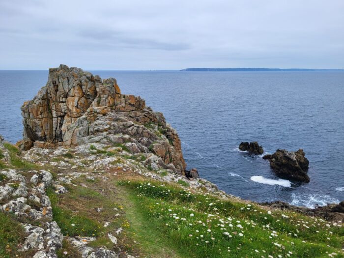 Gestern haben wir eine wunderbare Tour zu den Pointes des Sizun-Gebietes unternommen. Der Himmel bewölkt, das Blau des Meeres verhalten. Die Landspitzen waren jeweils über kurze Wanderungen zu erreichen, durch Farn, über Felsen, durch Blümchengärten. Sehr wenige Menschen unterwegs, angenehm. Je weiter südlicher es geht, umso voller; wir verzichten auf den berühmten Pointe du Raz und begnügen uns mit den stillen Klippen und Bildern. Rückkehr und fauler Nachmittag im Garten.