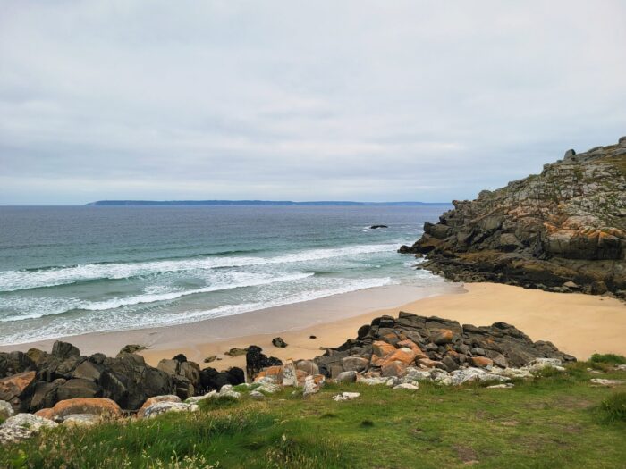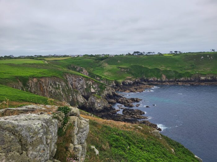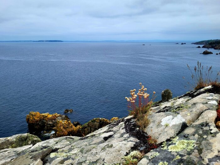 Gestern haben wir eine wunderbare Tour zu den Pointes des Sizun-Gebietes unternommen. Der Himmel bewölkt, das Blau des Meeres verhalten. Die Landspitzen waren jeweils über kurze Wanderungen zu erreichen, durch Farn, über Felsen, durch Blümchengärten. Sehr wenige Menschen unterwegs, angenehm. Je weiter südlicher es geht, umso voller; wir verzichten auf den berühmten Pointe du Raz und begnügen uns mit den stillen Klippen und Bildern. Rückkehr und fauler Nachmittag im Garten.