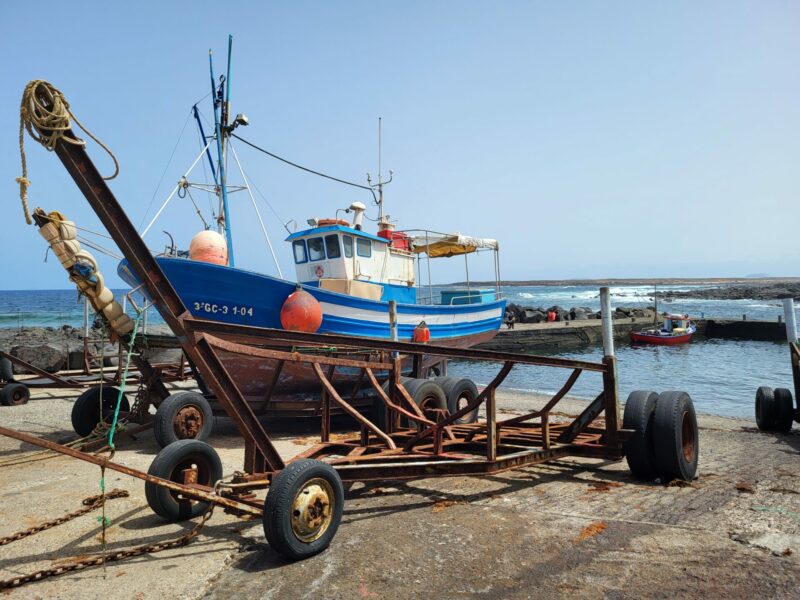 Nun, wie beginnen? Die Hauptstrasse ist eine Sandpiste, nur die Zugänge zu den Häusern sind befestigt. Der Strand unter dem Famara-Bergrücken ist ein Treff für …zig Surfer. Amüsant, in der Bar draussen zu sitzen, mit stadttauglichen Schuhen im Sand. Frisch gepresster Orangensaft für Herrn C., ein Croissant und Cortado largo für mich. Nein, wir hatten keine Shorts, Schlabber-T-Shirts, Flip-Flops oder Tatoos zu bieten. Sondern legere Sommerhosen lang, Leinenhemden, Sonnenbrille, Schiebermütze. Herr C. etwas konsterniert in diesem Surferparadies. Letztlich war es ein wunderbarer Vormittag.