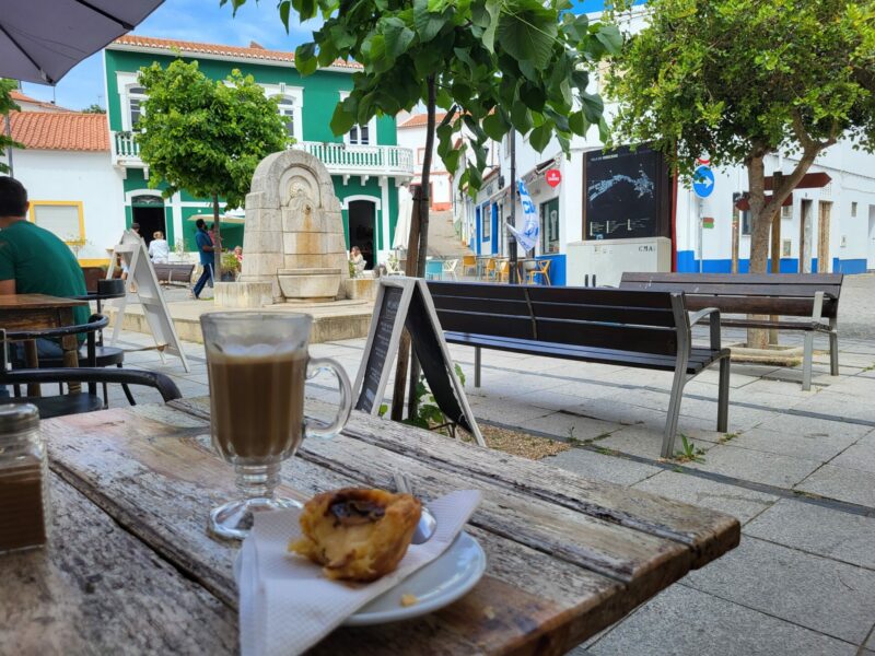 Gestern auf dem Rückweg von der Praia de Odeceixe: Der Fluss träge in der sinkenden Sonne. Es war so still, dass man das Hüpfen der Frösche und das Springen der Fische hören konnte. Kleine Vögel in der Luft und auf Sträuchern, Störche stolzierten über die Felder. Die Mutterkühe mit ihren Kälbchen träge hinter dem Elektrozaun. Die Tiere sind von sehr schöner brauner Farbe und gross. Weideflächen werden Tag und Nacht bewässert, sonst gäbe es nicht genug Gras. Der Bauer mit seinem eingestaubten Pick-up kommt jeden Abend vorbei, im schönen späten Licht des Tages, und schaut nach Tier und Wasseranlage. Zwei-, dreimal haben wir uns zugewinkt.